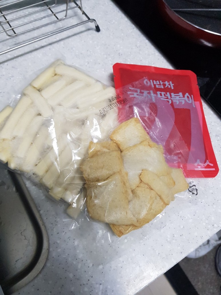 떡볶이 3봉 + 라면사리 3봉이 왔어요